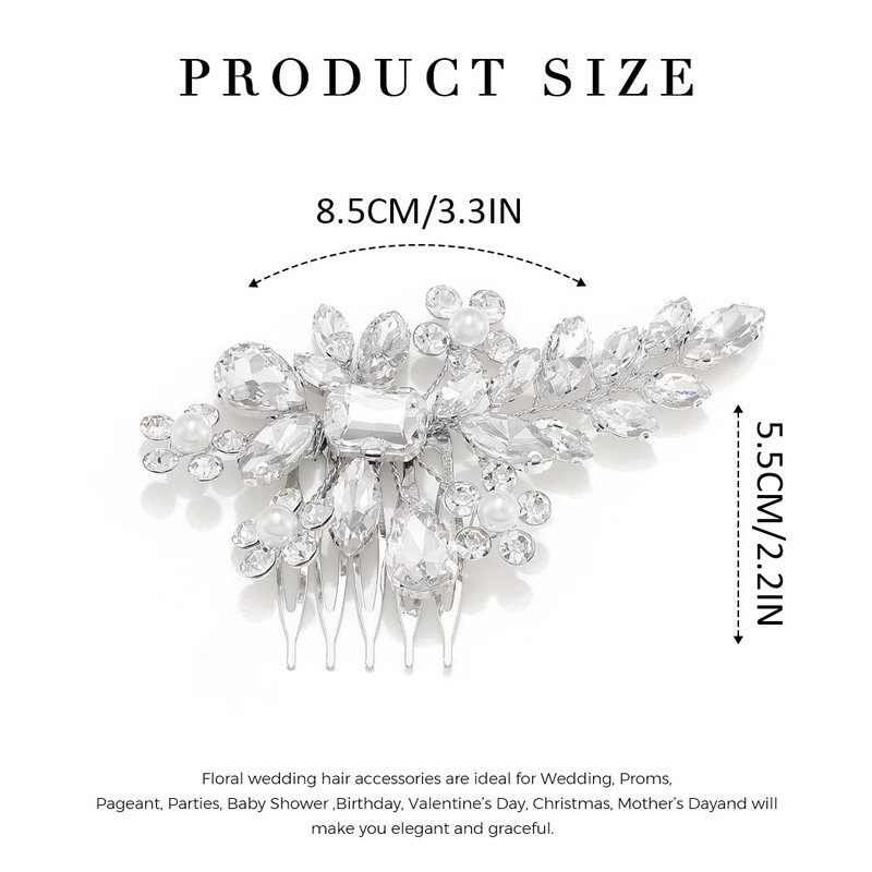 Unicra Silver Bride Wedding Hair Comb Bridal Flower Headpiece Sparkly Rhinestone Hair Accessorie for Women and Girls