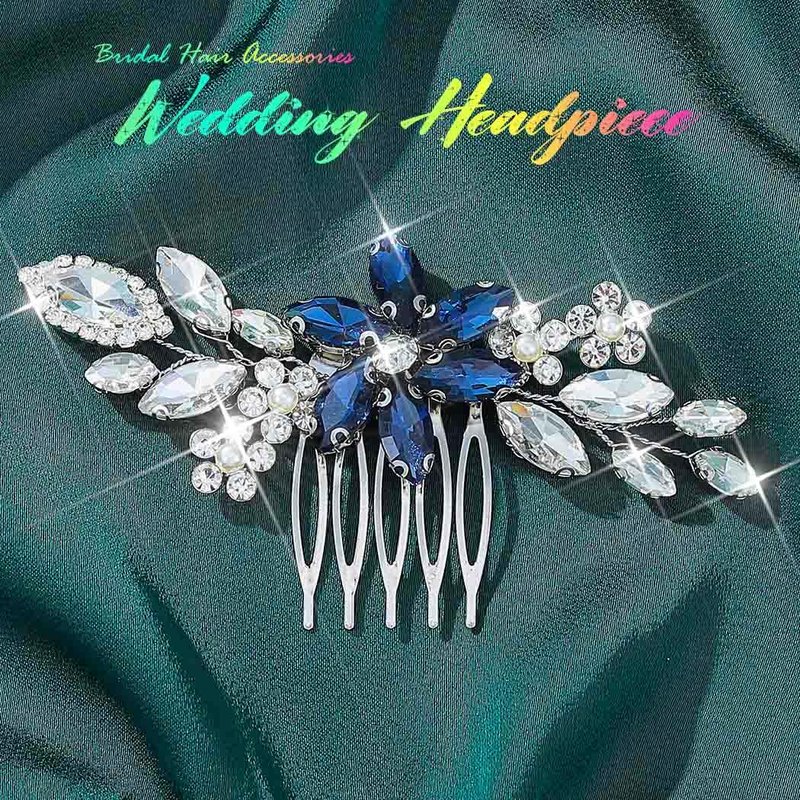 Unicra Silver Crystal Hair Comb Rhinestone Bridal Wedding Hair Pieces Flower Hair Accessories for Women and Brides (Blue)