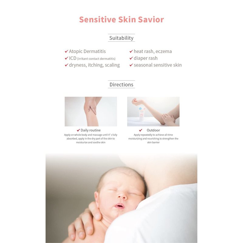 - Suitable for all skin types including: sweat rash, dry itching, peeling, seasonal sensitive skin, etc. Can be used by adults, women, infants, and children.