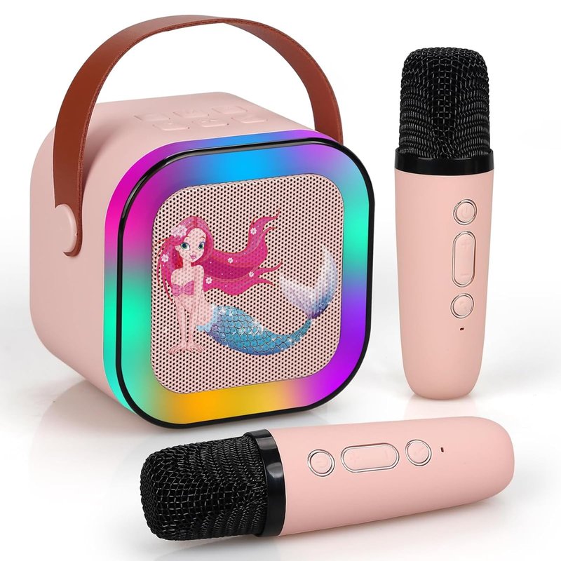 UNIH Mini Bluetooth Karaoke Machine for Kids, Portable Karaoke Speaker with 2 Wireless Mics, Toys for Girls Boy Ages 4, 5, 6, 7, 8, 9, 10, 12 +Year Old Festival Birthday Party(Pink