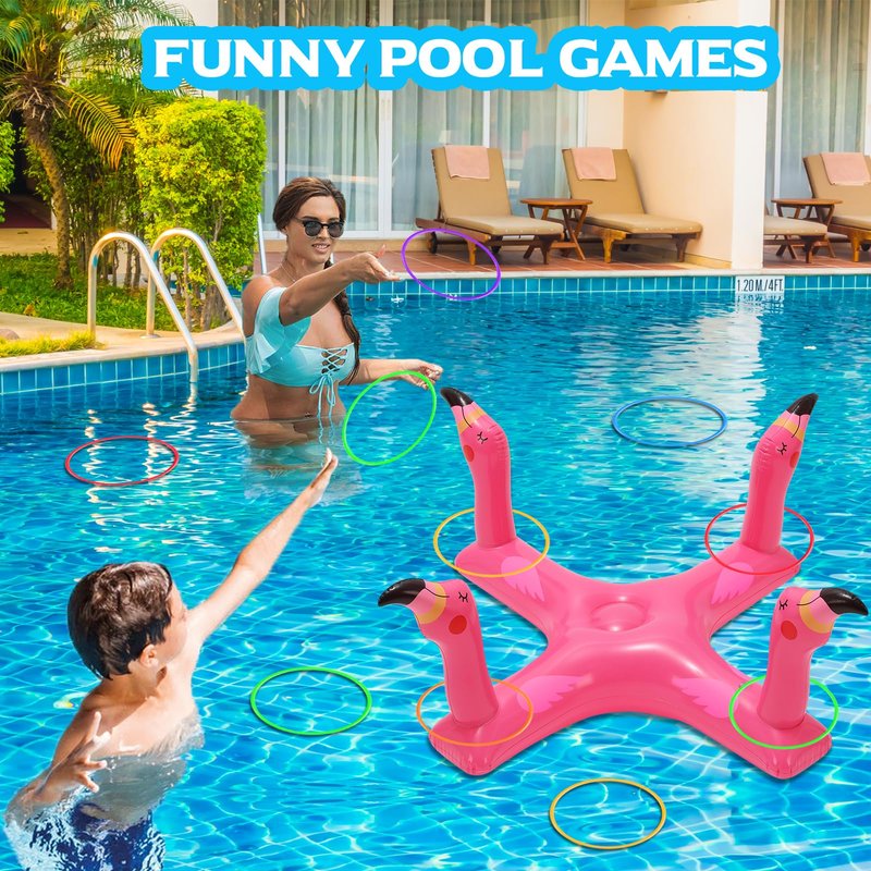 - SUMMER POOL GAMES FOR KIDS - The adorable flamingo with multicolor is always welcome to any party. Impress your kids and their friends with this inflatable unicorn ring toss and hoop – make sure you've prepared prizes!