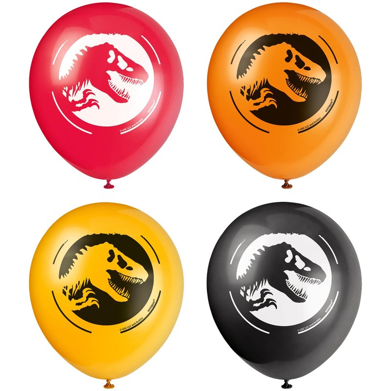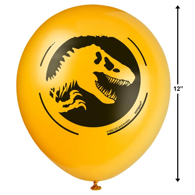 Unique Jurassic World 3 Round Latex Balloons - 12", (8 count) - Red, Yellow, Black, Orange Ballons, Easy Inflation – Great Dino-mite Party Decor for Kids' Birthday