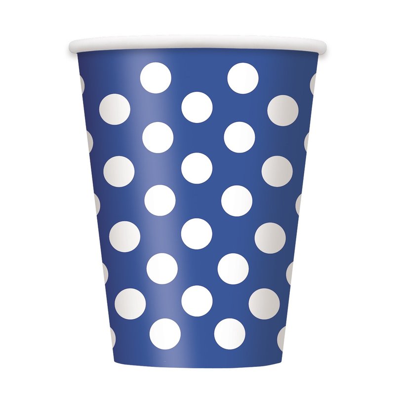Unique, Royal Blue, Polka Dot Party Paper Cups-12 Oz, 6 Pcs
