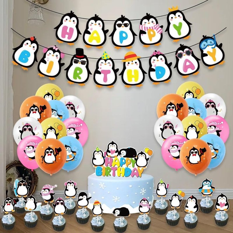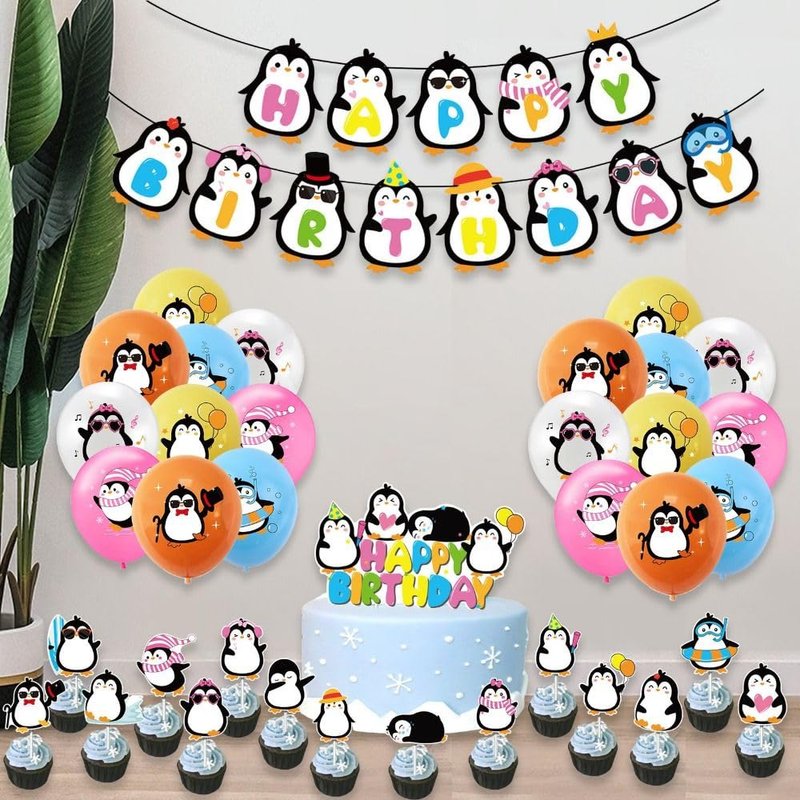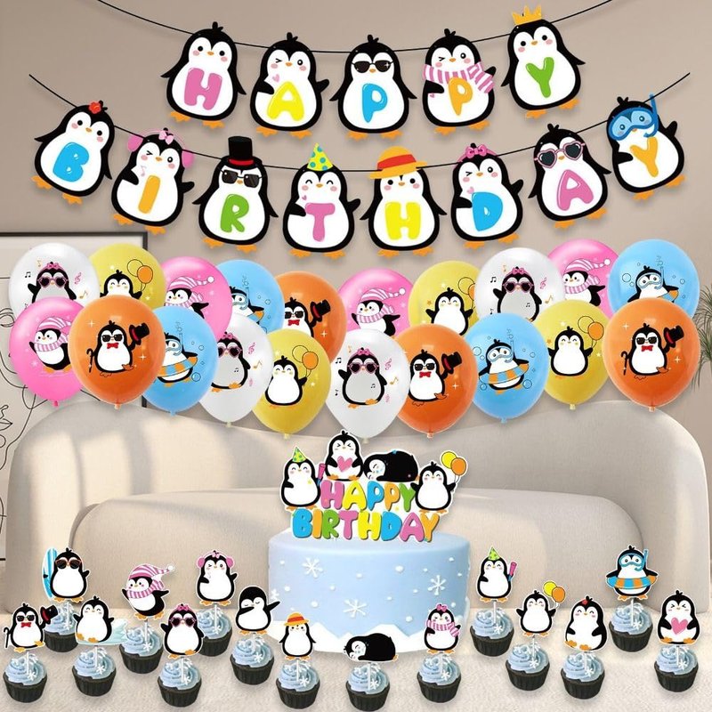 - Complete Party Set: This package includes everything you need for a penguin-themed extravaganza. From the eye-catching Happy Birthday Banner to the whimsical penguin print balloons and the charming cake and cupcake toppers, our set has you covered for a cohesive and festive celebration