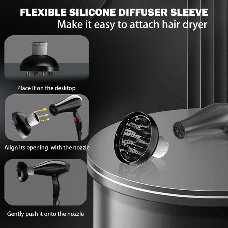 - 【Easy to Install】Most curly hair diffuser on the market are rotated to adjust the diameter of the hair diffuser attachment, which undoubtedly adds a lot of trouble, in order to make your installation easier, we use flexible silicone to make the sleeve of the diffuser attachment , so that when you install the nozzle of different hair dryer, Simply align the opening of the diffuser with the nozzle of hair dryer and push it onto the end