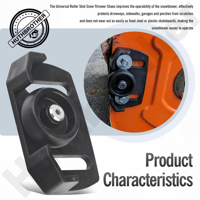 - ❄️ Product Characteristics: The Universal Roller Skid Snow Thrower Shoes improves the operability of the snowblower, effectively protects driveways, sidewalks, garages and porches from scratches, and does not wear out as easily as fixed steel or plastic skateboards, making the snowblower easier to operate.