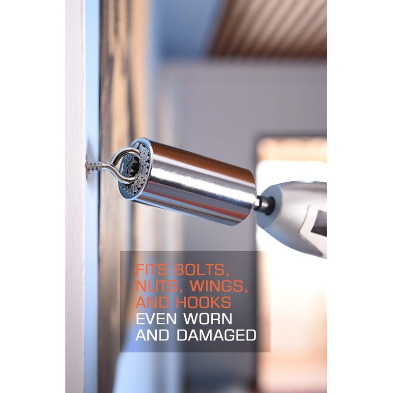 - FLEXIBLE - Mutilfunctional socket can graso the hex nut, screw eye, hook, tension screw and bolt head. Works on a power drill (adapter not included).