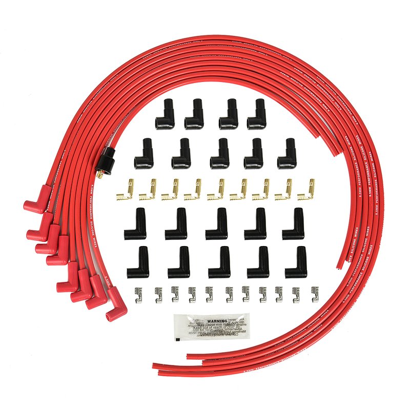 - 450 F Rated Silicone Jacket - This 8.5mm wire's double silicone construction is rated to 450 degrees F. The high-gloss wire jacket resists moisture, chemicals, and heat extremes for longer life and great looks.