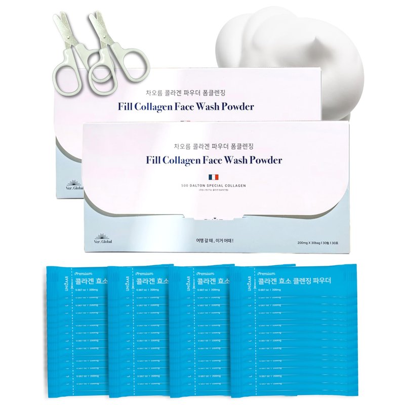 UNIZAAR Fill Collagen Enzyme Powder Face Wash Set of 2 – (0.007 oz * 60EA) Luxurious French Collagen & Urea Infused Korean Cleanser, Travel Face Wash, Travel Size Face Wash for Women, Korean Skin Care