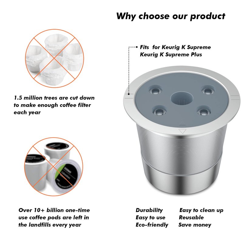 - Save money - Keurig Supreme K Cup is reusable and very easy to clean. After the coffee grounds have brewed, pour the coffee grounds into the trash and rinse with water. If you encounter problems during the use of the reusable K Cup, please send us an email and we will do our best to support you after the sale!