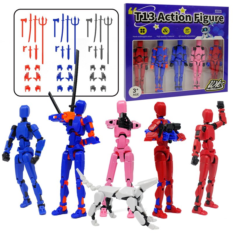 Updated Assembly 6 Pack T13 Action Figure, Titan 13 Action Figures, Dummy 13 Action Figure Set,Nova 13 Robot Toy, Lucky 13 Action Figure 3D Printed Multi-Jointed Movable, Birthday Gift for Kids Boy
