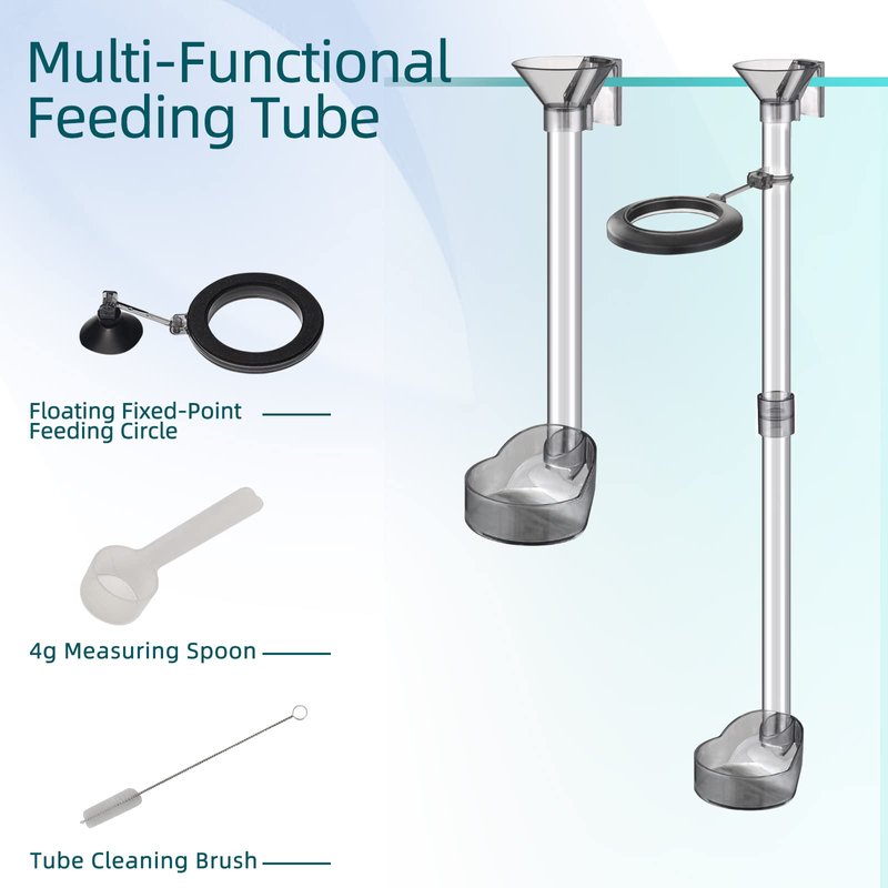 - đ ăPackage IncludedăThe fish and shrimp feeding tube kit you receive includes: 2* Feeder Tube,1*Feeding Ring,1*Tube Cleaning Brush,1*4g Measuring Spoon.