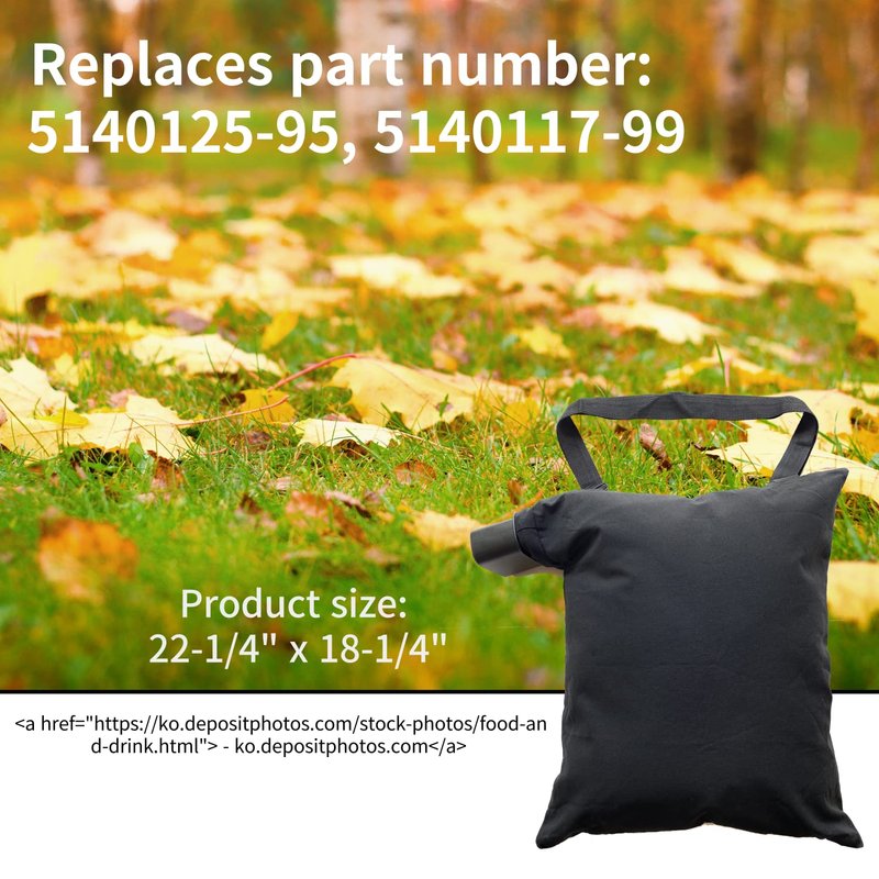 - This bag holds the leaves and debris sucked up by the Leaf Blower Vacuum. It includes a shoulder strap and a convenient zipper to open and close the bag