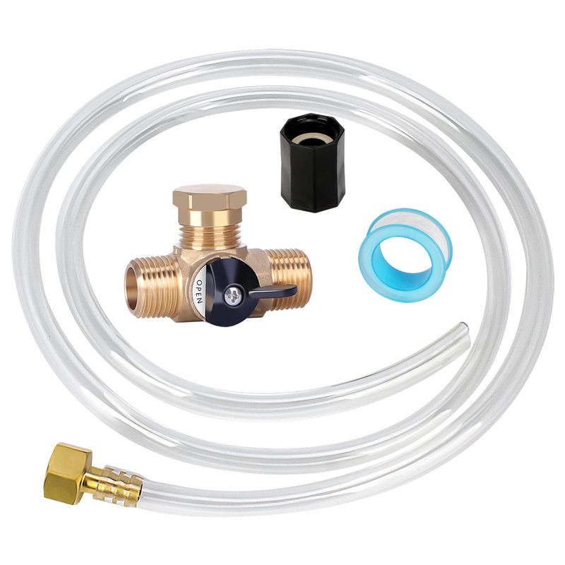 - 🏆【Rv Winterizer Kit Includes】 1/2" NPT 3-Way Valve x 1, 59" Siphon Hose x 1, Brass Barb Adapter x 1, Double Female Fitting x 1, Teflon Tape x 1. Teflon Tape provides a seal to prevent leaks.