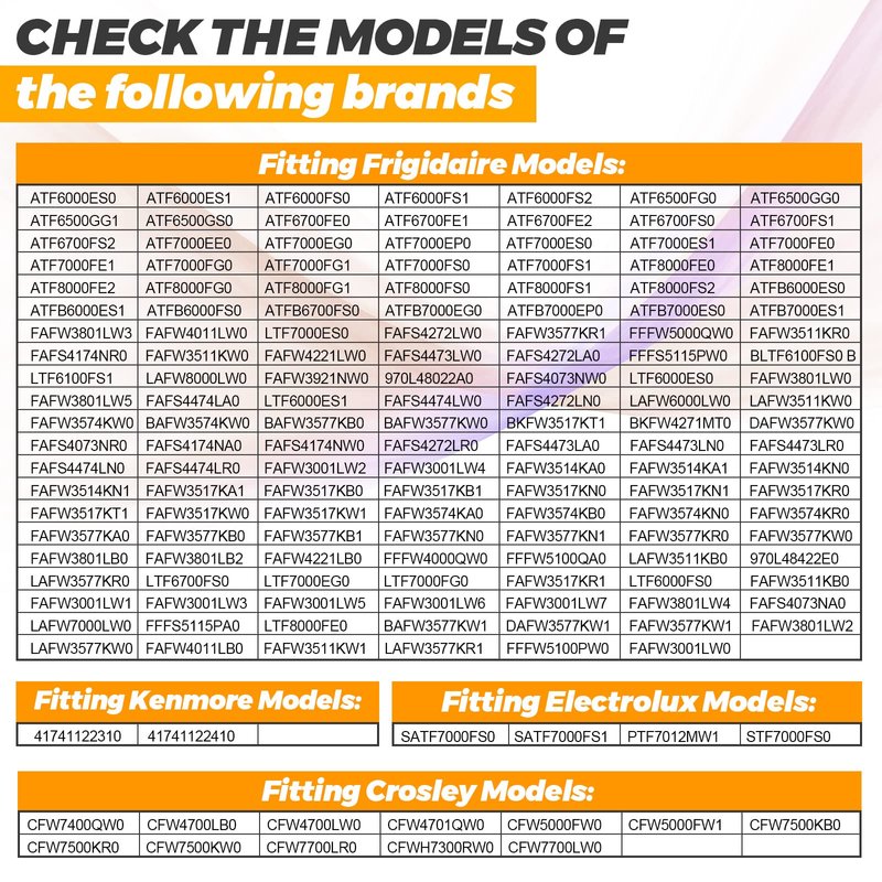 WORKS WITH MOST BRANDS: Cros-ley, Electrolux, Frigi-daire, Ken-more