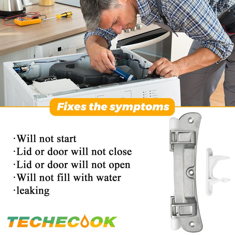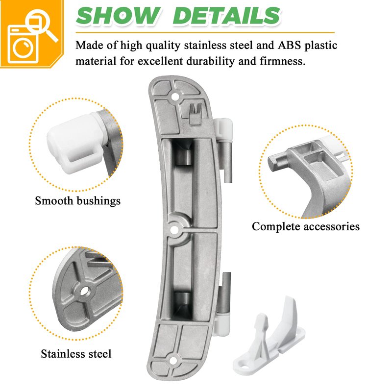 - ✔✔【PACKAGEAGE INCLUDES】: 1 x 134550800 Washer Door Hinge with bushings, 1 x frigidaire 131763310 Door Strike, which are made of high quality stainless steel and ABS plastic material for excellent durability and firmness. If Door Hinge or Door Strike are broken, the washing machine will have the following conditions, and the door hinge or door strike need to be replaced in time: ①Door connection is loose ②Door opening and closing abnormal ③Door won't lock ④Washer will not start
