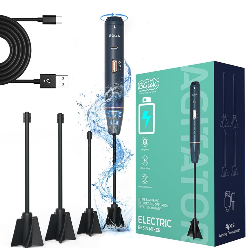BGick Upgraded Resin Mixer, compared to traditional mixing methods, the mixer solves the tedious repetitive motions of hand mixing, allowing for wrist protection. It makes mixing more uniform and well-mixed. This premium epoxy mixer can be used to mix epoxy resins, pigments and other viscous liquids. And it meets the needs of epoxy resin molds, resin consumables, jewelry casting, and silicone mold making. Included in the package: 1 x Rechargeable Electric Resin Mixer 4 x epoxy resin stirring paddles (2*small 2*large) 1 x USB Type-C Charging Cable 1 x Instruction Manual.