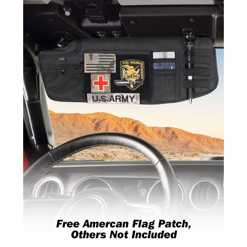 - DURABLE & STURDY: The molle sun visor organizer is made of double-layered 1680D Oxford cloth. Stay organized and within reach while driving. Buy with confidence! QMPARTS Offers a Limited Lifetime Warranty on Products Damaged During Delivery or That Have a Confirmed Manufacturer Defect.
