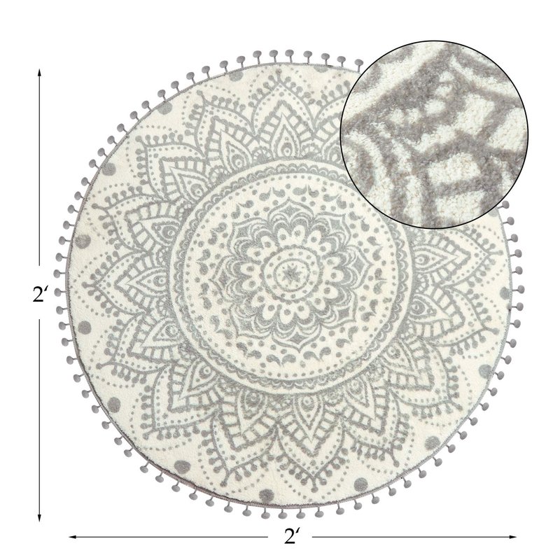 - [CUTE POM POM CIRCLE RUG] This round grey rug introduced an unexpected element in popular Boho elements: POM POM Tassels! Easy way to add a pop of decorate while still maintaining a very minimalistic and clean design.The circular cute bohemian rug will never goes out of style.