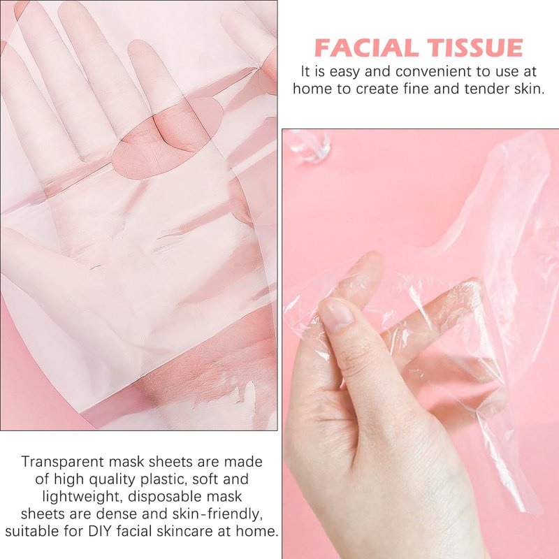 UPIQNG 100Pcs Face Mask Sheet Plastic Disposable Facial Mask Evaporation Prevent Moisturizing Facial Mask Sheet Transparent Face Wrapped Paper DIY Masks Supplies