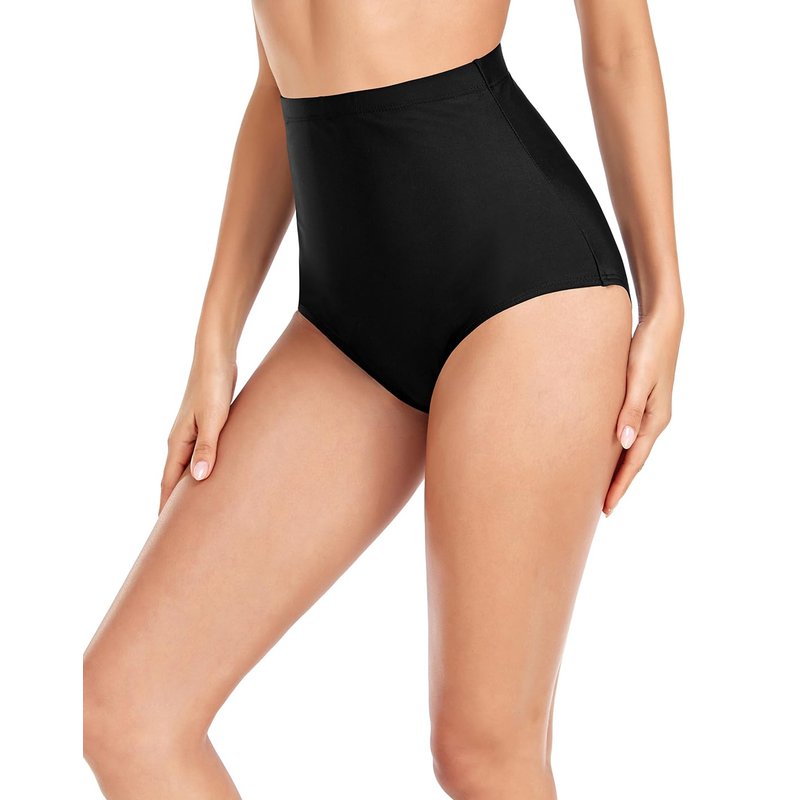Upopby Women's High Waisted Swimsuit Bikini Bottoms Tummy Control Tankini Bottoms Swim Shorts Black L