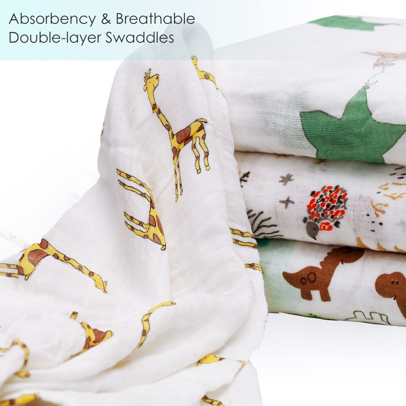 - Practical and good-looking:Ideal for swaddling, sunshield, tummy time, privacy throw and more.Four individual unisex patterns that suit for both baby girls and baby boys.