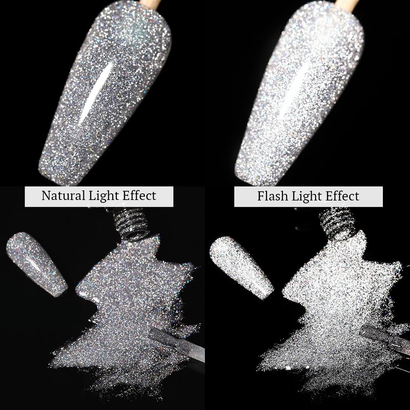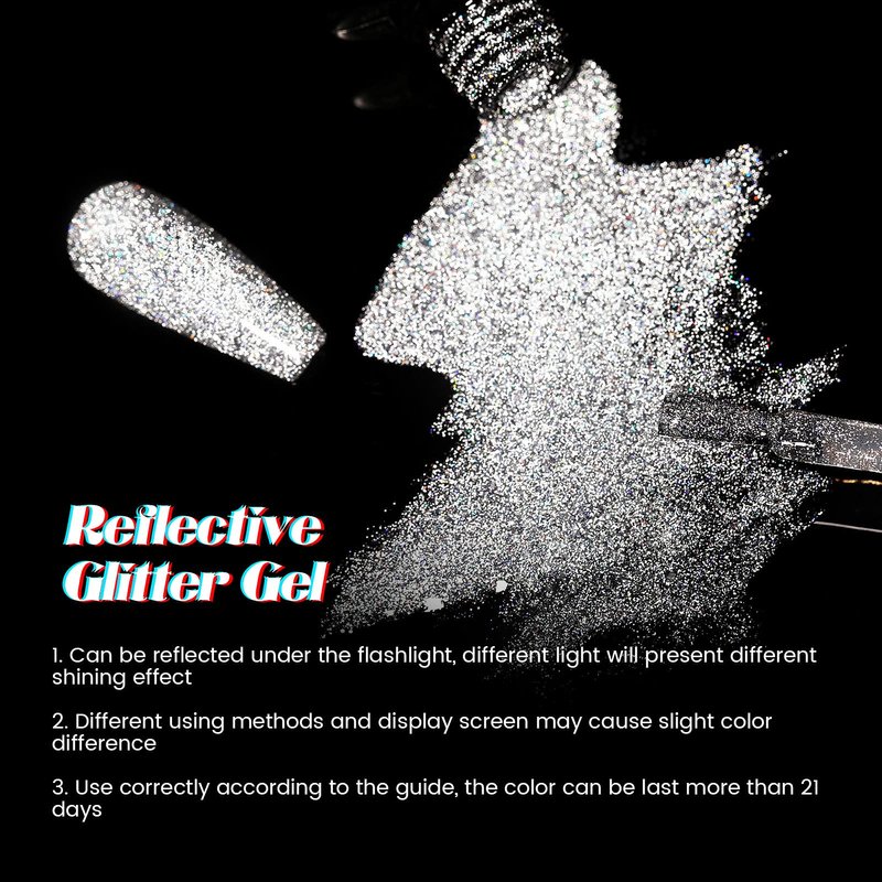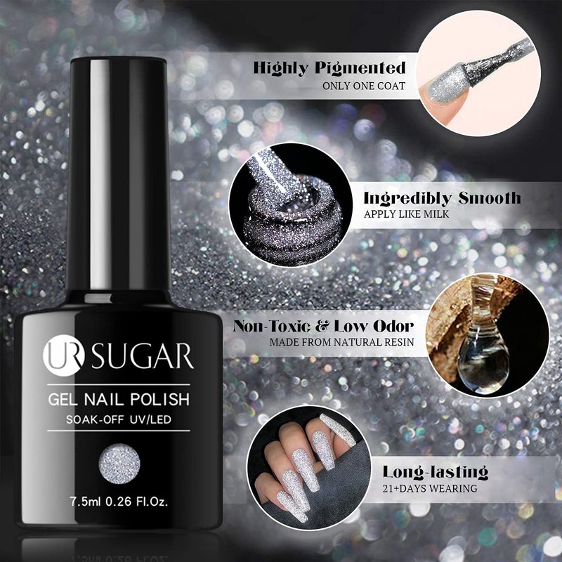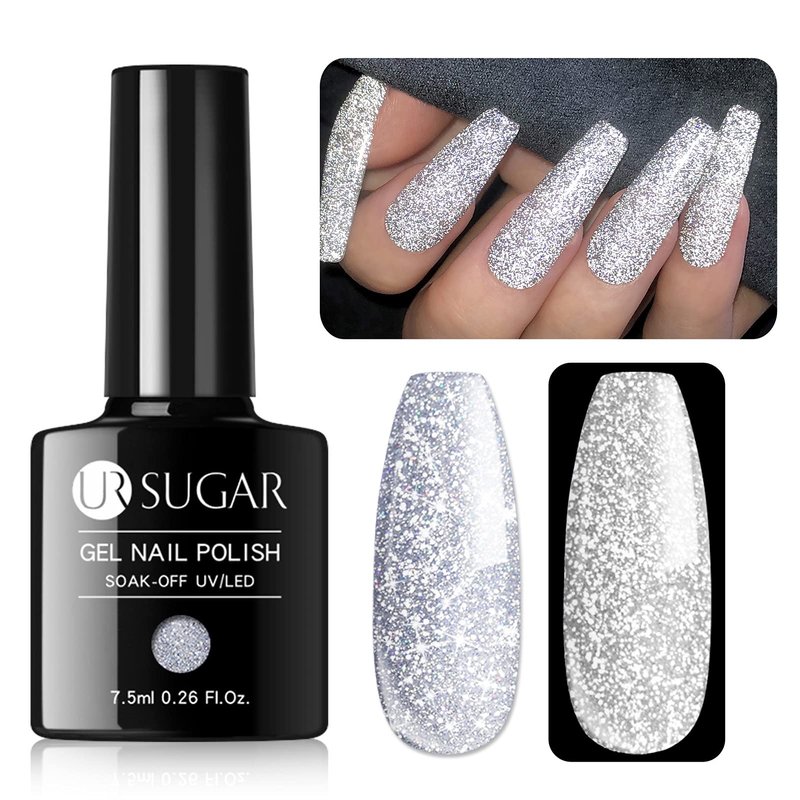 - 【Reflective Glitter Gel Polish】 UR SUGAR silver glitter gel polish is highly pigmented that delivers a super shiny effect in just two coats. For a gorgeous, shimmery and sparkly finish, simply apply a gel top coat. This polish is perfect for daily life as well as various parties andevents.