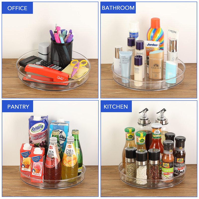 - Large Capacity : Size and capacity meet daily needs, increase turntable capacity, which is convenient to access what you what. The set of 2 transparent 10.5" deep turntable cabinet organizer provides storage and organization for the kitchen, outdoor dining room table, or countertop.