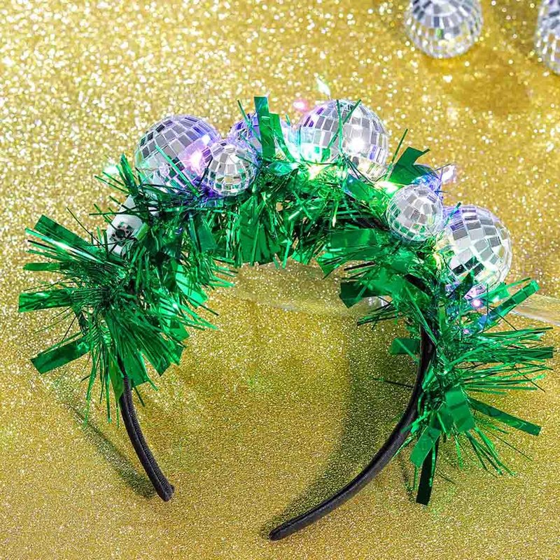 Uranian Light Up Disco Ball Headbands Mirror Balls Hair Bands LED Green Tinsel Hair Hoop Festival 70s Party Costume Hair Accessories for Women