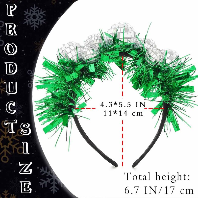 - Mirror ball headpiece decorated with shiny balls of different sizes and glitter green tinsel, dazzling design makes you stand out in the crowd