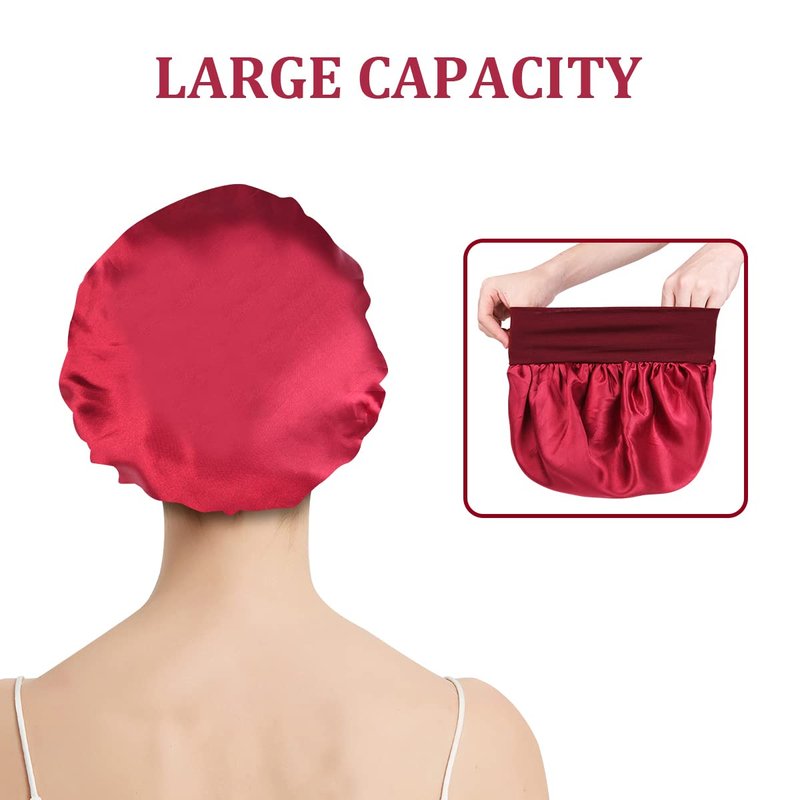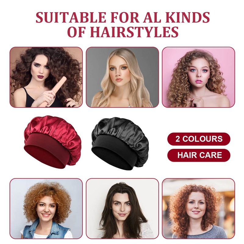 - 【SIMPLE AND FASHIONABLE】Package includes 2 colors of satin hat, classic black and red, which can be matched with various styles of clothes to help you create a charming look, suitable for going out even at home, the nightcap will not leave marks on the forehead.