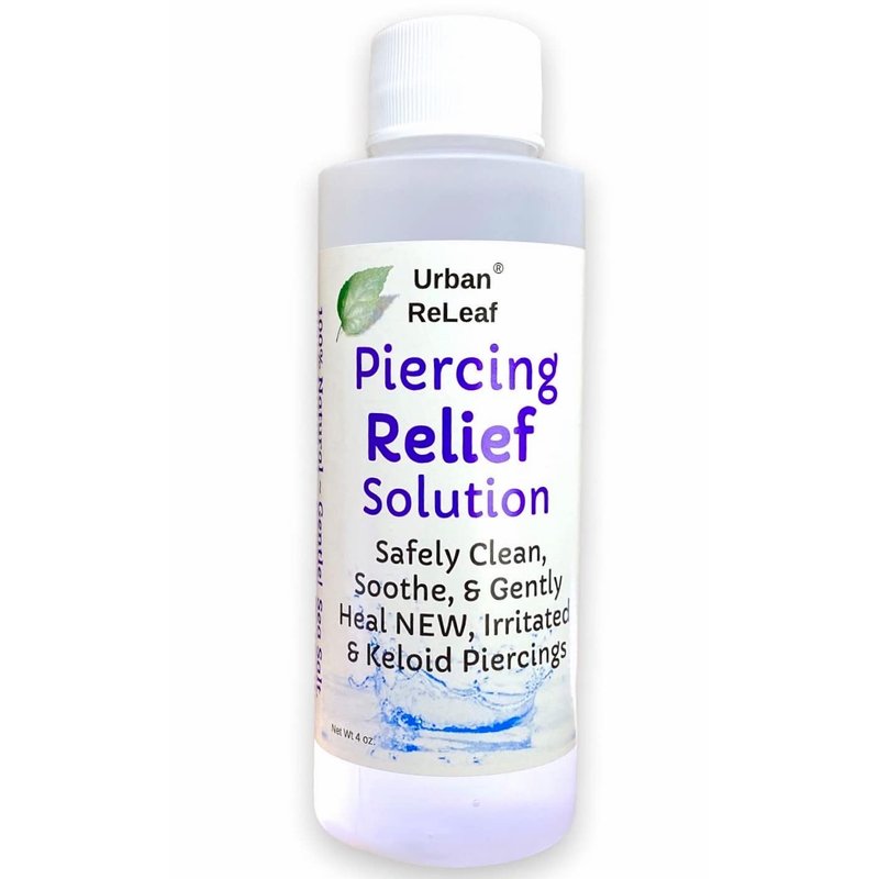 - PIERCING RELIEF Solution - the natural solution to AFTERCARE! Ready to use, 4 oz. Medicated Sea Salt soaks are the best thing you can do for a new, irritated or keloid piercing. PIERCING RELIEF Solution - the natural solution to AFTERCARE! Works fast to heal the 'red and angry' feeling in new piercings.