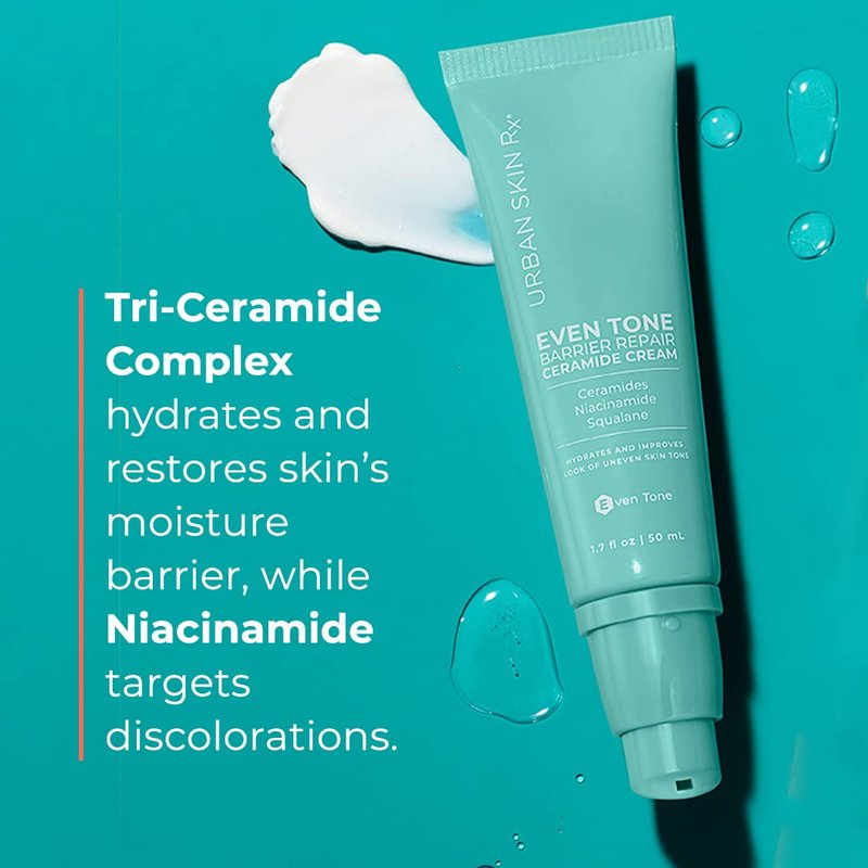 - ABOUT THE PRODUCT: The Urban Skin Rx Even Tone Barrier Repair Ceramide Cream is a multitasking hydrator that’s just what you need to keep your barrier game strong. This lush but lightweight white cream applies clear, feels silky, and has a subtle scent. Suitable for all skin types and ideal for those with uneven skin tone or rough texture and those looking to restore their moisture barrier for a more radiant complexion.