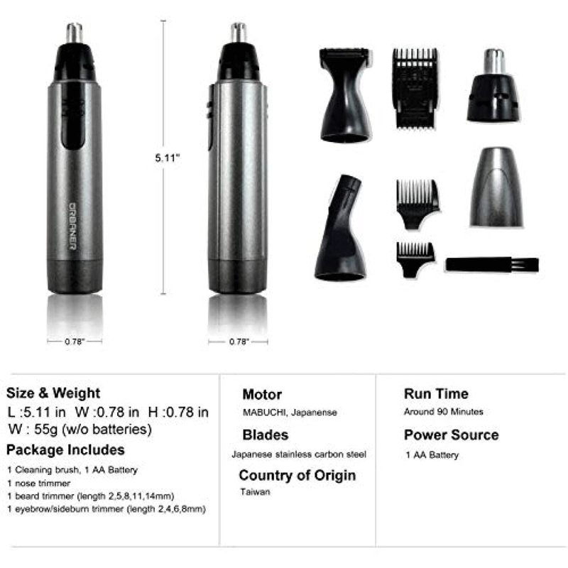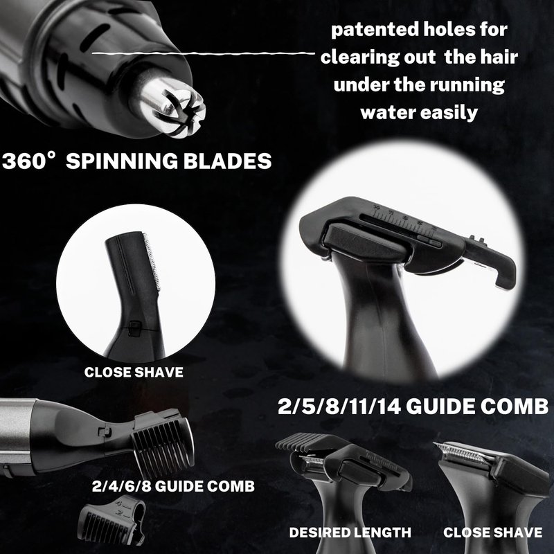 - For Nose and Ears - The 360-degree spinning blade trims your hair fluently without any unpleasant pulling, and rinse the trimmer for easy cleaning and maintenance.