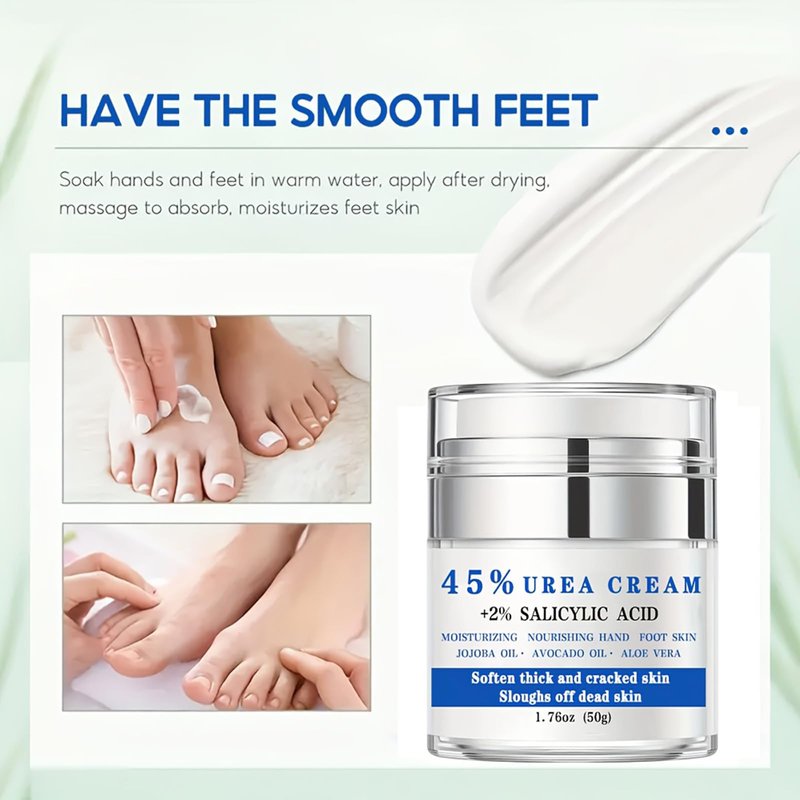 Powerful Callus Remover: Formulated with 45% urea and 2% salicylic acid, this cream effectively removes calluses and provides gentle exfoliation, leaving your feet smooth and soft