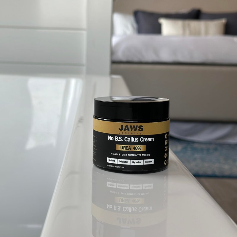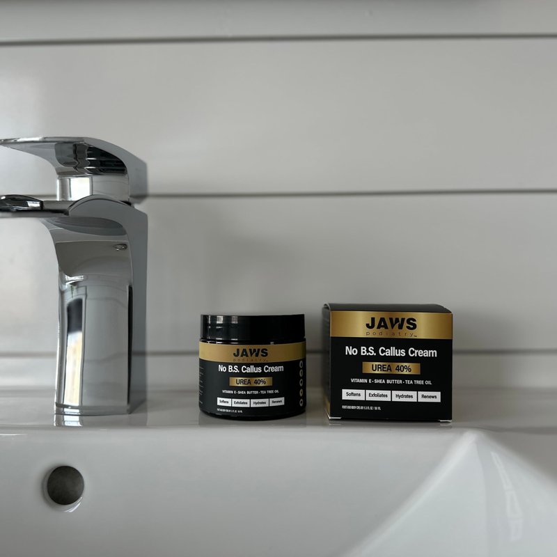 Urea Cream - Jaws Podiatry No B.S. Callus Cream - Foot Cream for Dry Cracked Heels Feet Knees Elbows Hands - 40% Urea Callus Remover For Feet - Soften Exfoliates Hydrates and Renews Skin