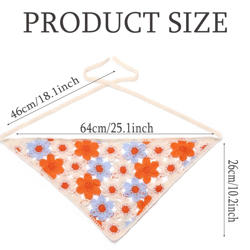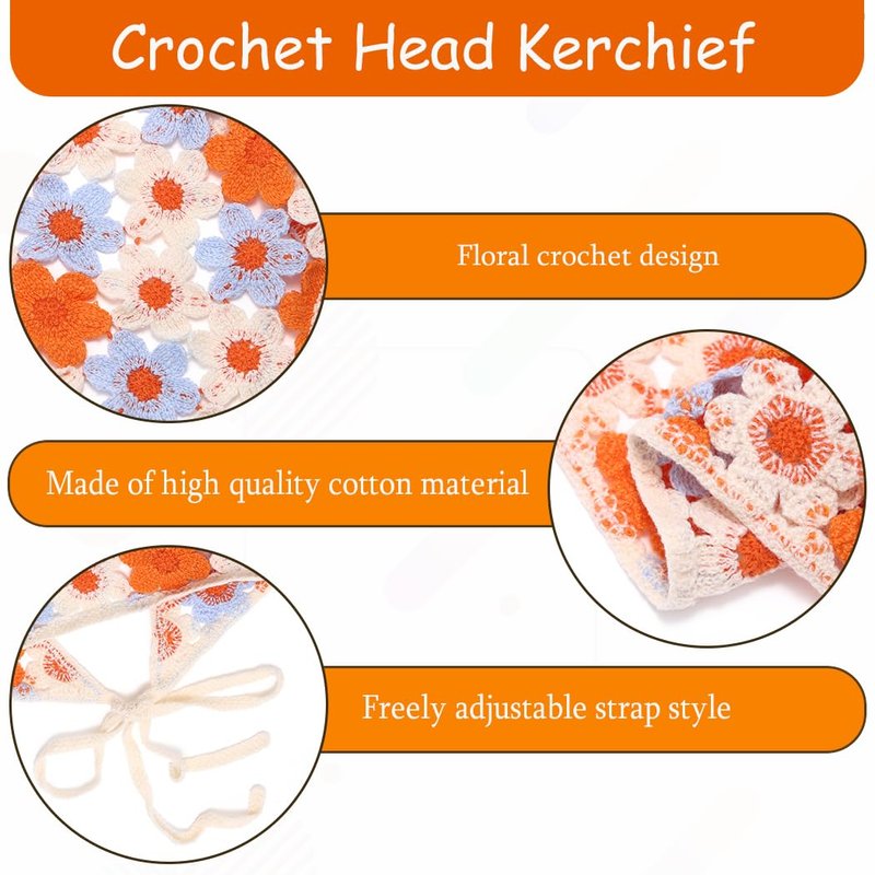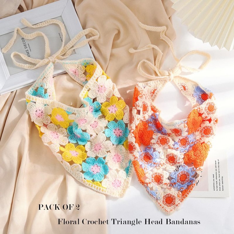 - There are 2 different colors of boho head scarf headband. The floral crochet hair bandana features vibrant colors and intricate patterns.The combination of bright hues and delicate floral motifs creates an eye-catching accessory that complements any outfit.