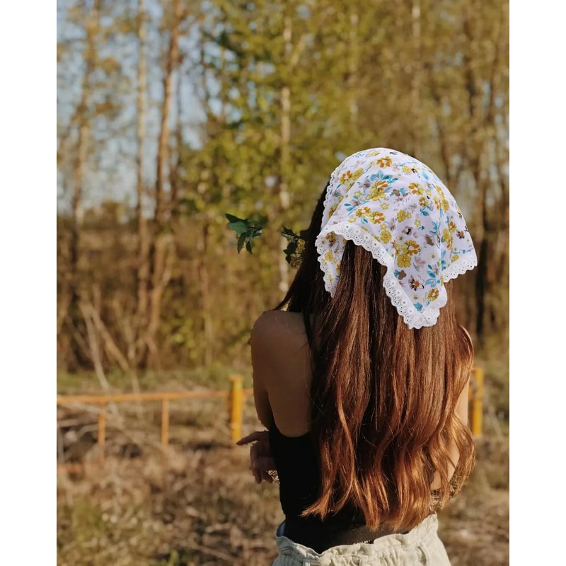 - The chiffon head kerchief features a lace-up design and dainty flowers, adding a touch of elegance and femininity.These floral triangle hair scarves are perfect for dressing up casual ensembles, pair well with sundresses, skirts, and shorts,adding a subtle yet stylish touch.