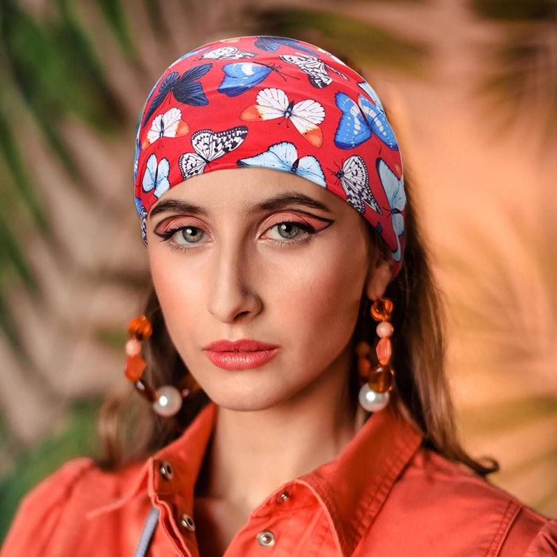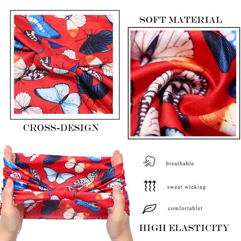 - Each color of criss cross head wrap headband is printed with colorful butterfly patterns, which are brightly colored, giving people a lively feeling. The wide design is more suitable for different hairstyles and more practical.