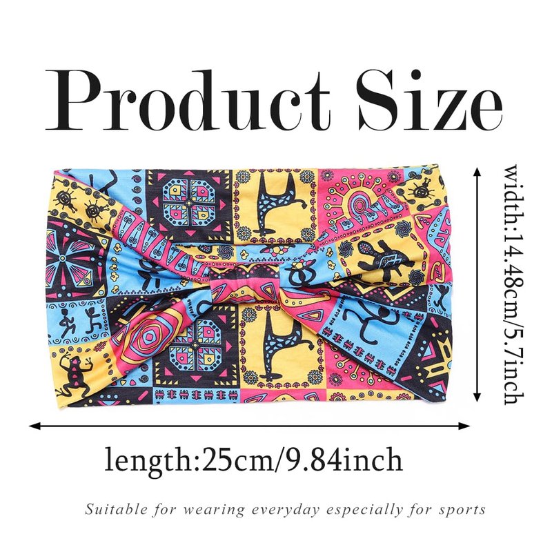 - Bohemian turban headband is approx 5.7 inches in width and 9.84 inches in length,,can be extended to 12.3 inches.One size fits most.