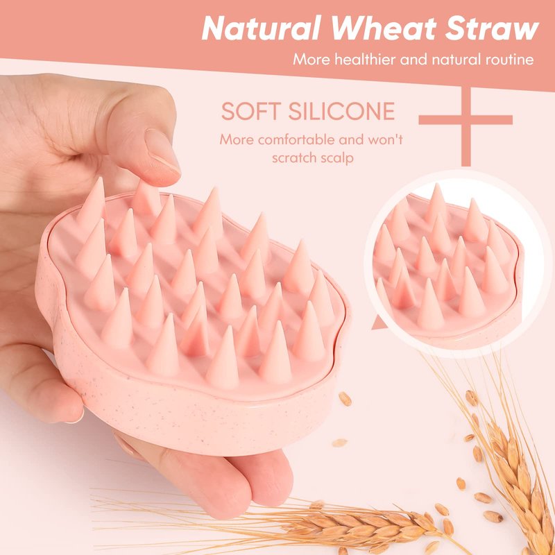 hair scalp massage shampoo brush is made from natural wheat straw and paired with soft silicone bristles.