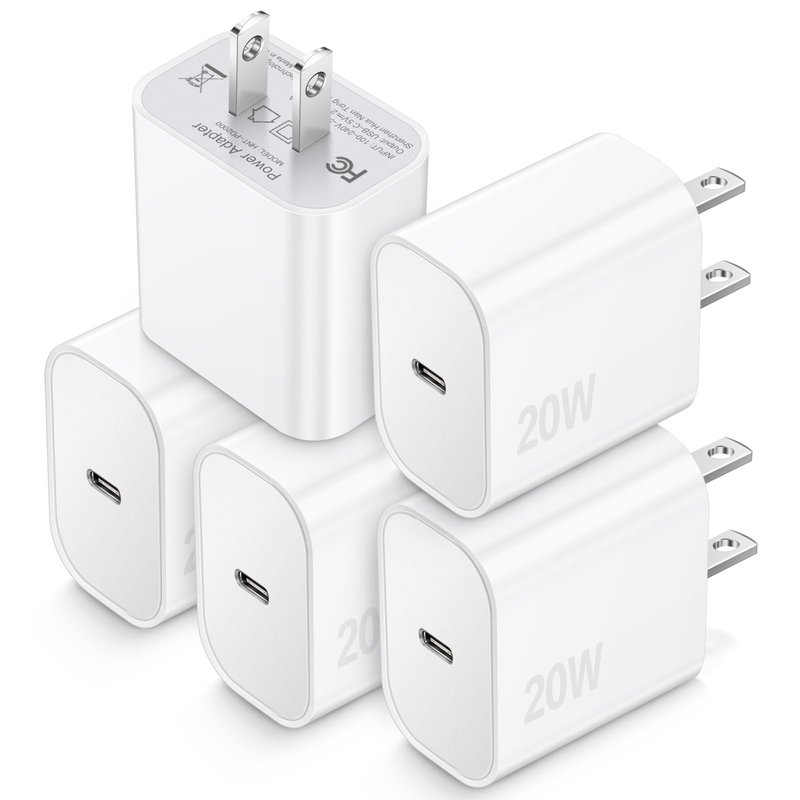 20W USB-C iPhone Charger Fast Charging: Fast Charging USB-C port provides a maximum power output of 20W, offer fast and efficient charging three times faster than the 5W charger and charges iPhone 13 12 devices to 60% in 30 minutes. lightweight Type-C Wall Charger Block: The compact design saves space and is easy to put into bags and pockets. You will get 5 pack iphone charger to meet your daily meet.