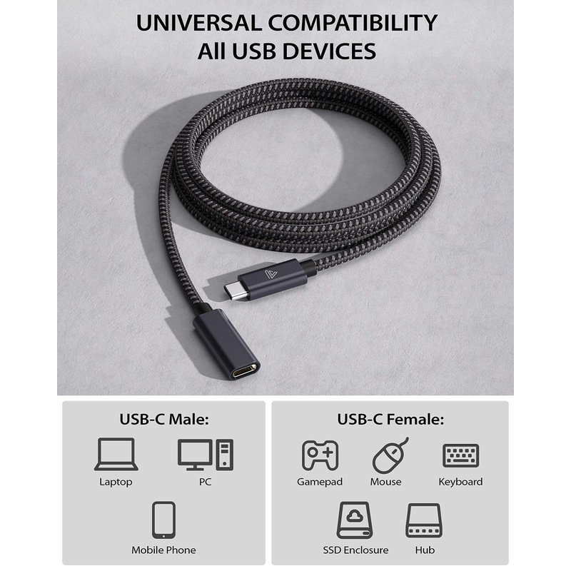 This is a practical type c extension line.This solves the embarrassment of the distance when the equipment is not enough.Carrying this durable and practical accessory is a good choice to you.