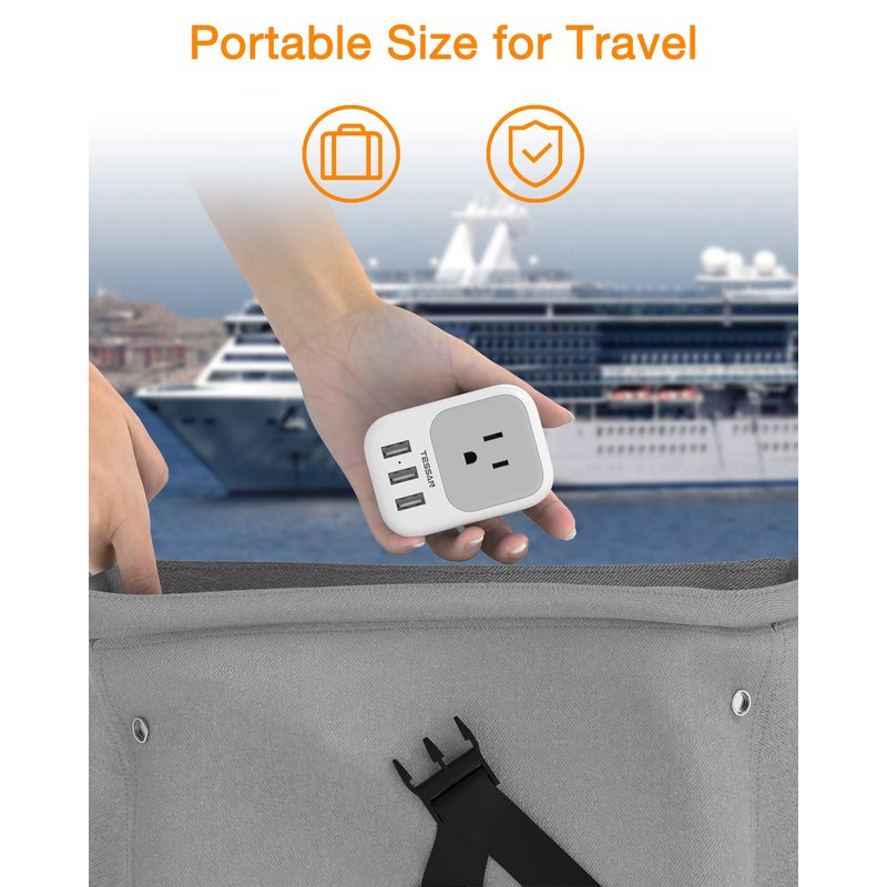 USB Charger Block, TESSAN USB Plug Adapter with Electrical 4 Box Splitter 3 USB Wall Charger Ports, Multi Plug Outlet Extender Charging for Cruise, Travel, Office, Dorm Essentials