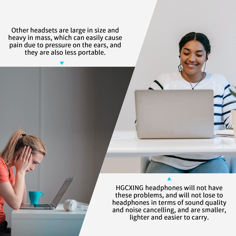 - Comfor Wear Experience: HGCXING headset adopts an ergonomic design, and it feels comfortable even when used for a long time.Other headsets feel squeezed when worn for a long time. HGCXING headphones can prevent this from happening.