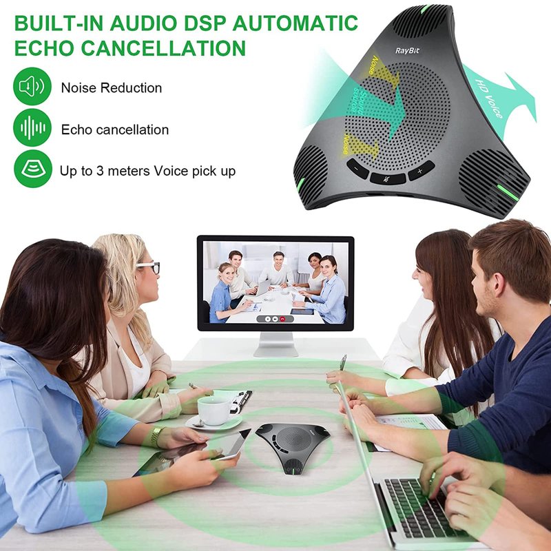 - Audio Technology - Digital Signal Processing [DSP] & Automatic Gain Control [AGC] & Acoustic Echo Cancellation [AEC] & Automatic Noise Suppression [ANS]. The conference room microphone and speaker will give you a professional meeting experience.