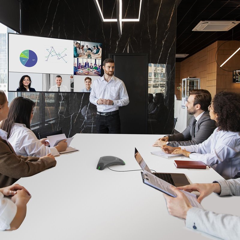 - Smart Audio Algorithms - The conference room microphone and speaker can guarantee the complete elimination of echoes, and the excellent noise reduction effect, giving a good conference call effect even in a noisy environment.