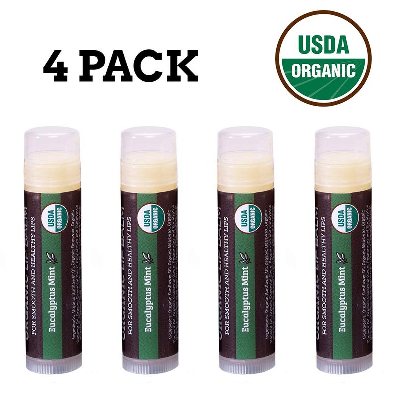 - 4-PACK OF DELICIOUS EUCALYPTUS MINT FLAVORED USDA CERTIFIED ORGANIC LIP BALM. Soothe your lips with our fruit lip balm. Safe for the whole family.