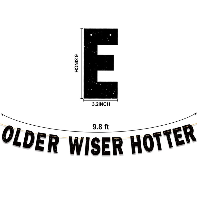 Ushinemi Black Older Wiser Hotter, Funny Birthday Banner for Men Women, Glitter Birthday Party Decorations