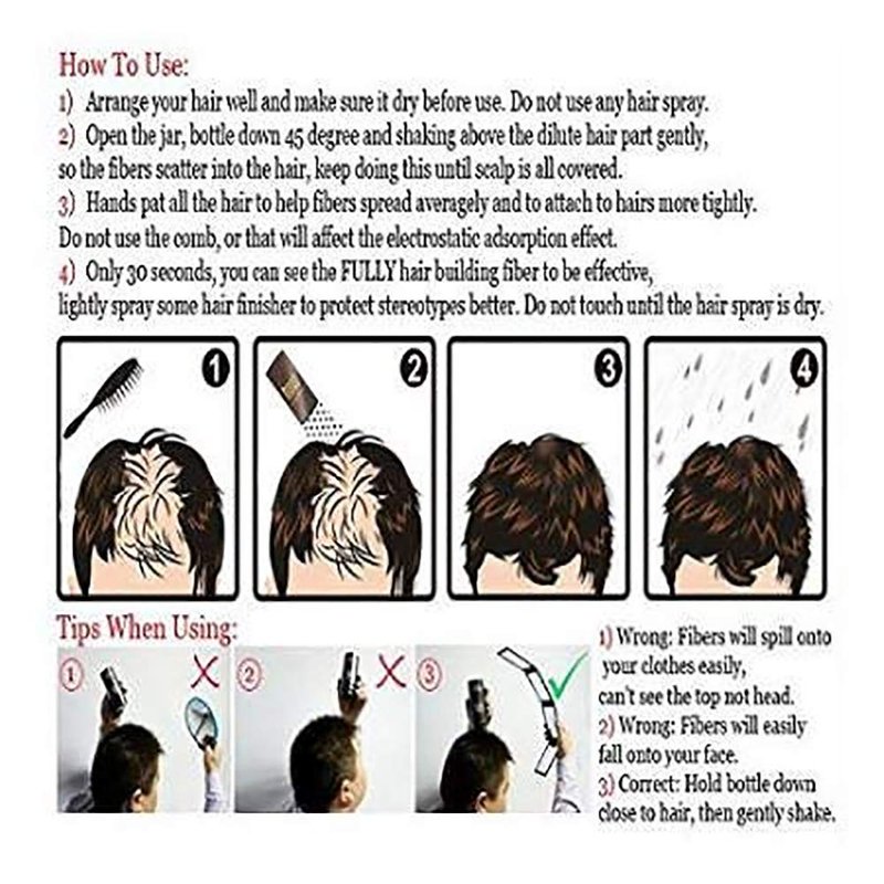 - Suitable for All Hair Types: 9 available shades Hair Building Fibers works with all hair types. hair loss “regrowing hair”.hair fibers instantly eliminates the appearance of bald spot or thinning hair.